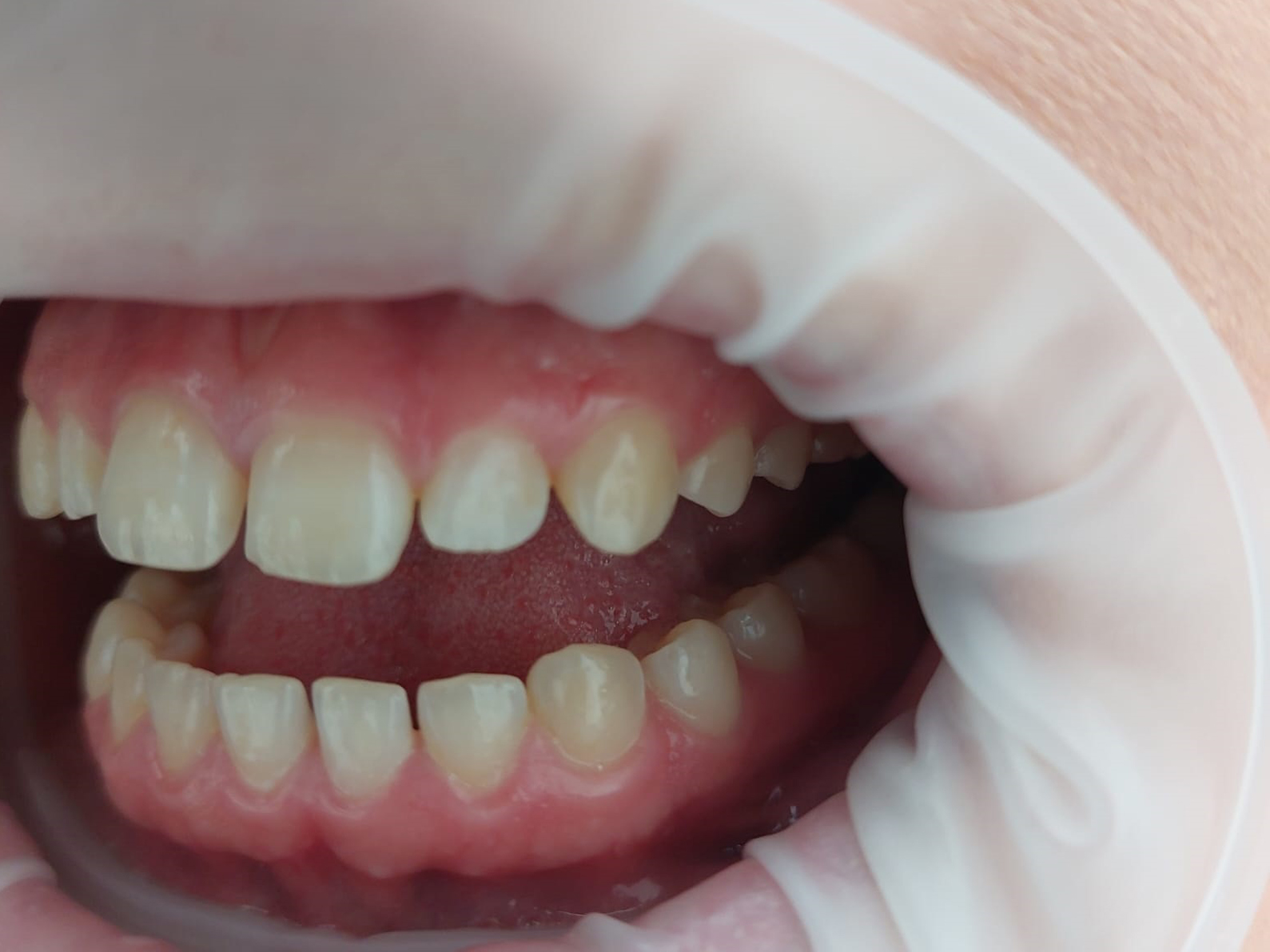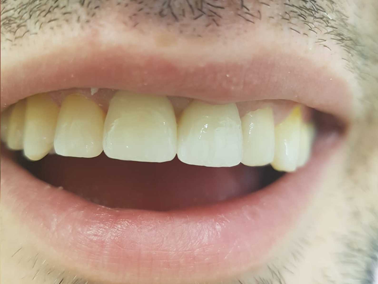 Pacjent poprosił o kosmetyczne zamknięcie przestrzeni międzyzebowych, wykonano korektę kompozytem.